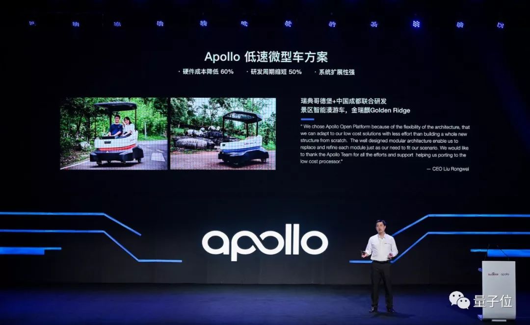 Apollo低成本低速自动驾驶方案,针对景区漫游、自动清扫、快递配送等低速场景,基于ARM构架,将打造自动驾驶的硬件成本降低60% ,研发时间缩短 50%,门槛更低。