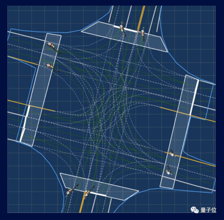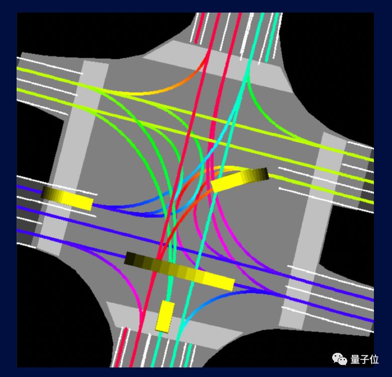 第二张加了用颜色表示的道路信息,不同颜色代表着不同的车辆行进方向,渐变线条就是车辆改变行驶方向;