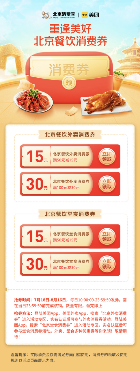 2022北京餐饮消费券7月18日开始发放,美团助力北京释放消费活力