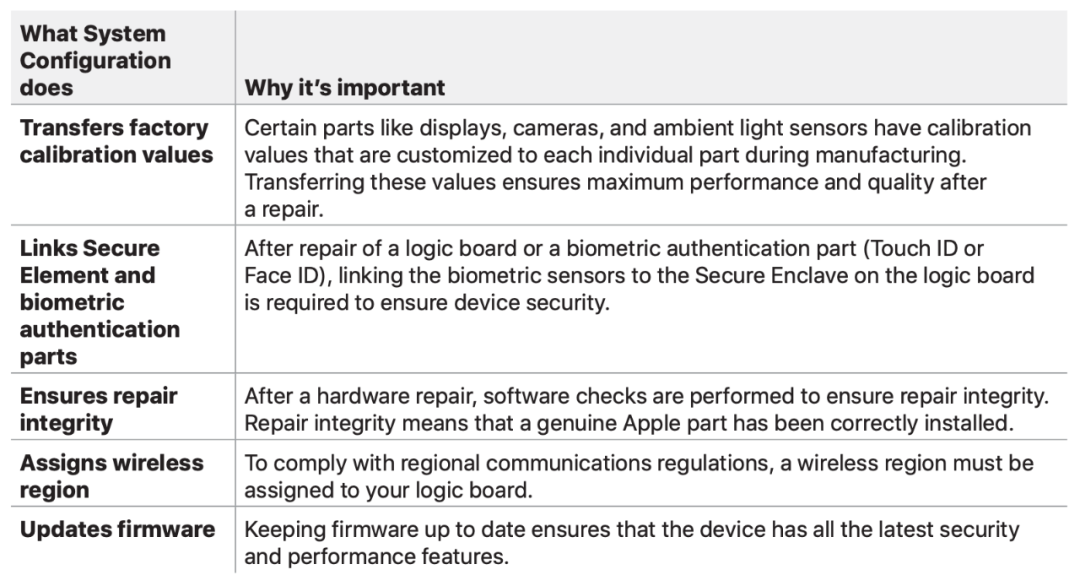 修复结束后,可能需要系统配置步骤。系统配置是一个软件工具。运行系统配置有许多目的,这些目的根据所替换的部件而有所不同。