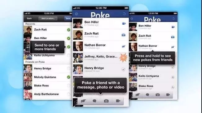 2012年,一个名叫 Snapchat 的“阅后即焚”社交 app 引爆了青少年用户,短时间获得巨量下载。很快,Facebook 就做出了一个名叫 Poke(戳)的产品,采用了和模仿对象一致的阅后即焚理念(文字、视频发布后一段时间消失)。