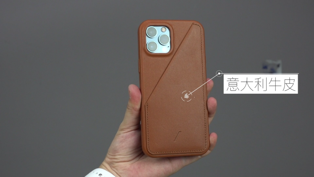 至于这一款,是我个人比较喜欢的,它表面是一层意大利牛皮,手感极其舒适,拼接的部分被设计成了卡包,而且做了防消磁,平时放个银行卡门卡都挺方便,同时也不会影响ApplePay的使用。里面是翻毛皮材质内衬,给人高级温暖的感觉,防震缓冲的同时也不伤手机。