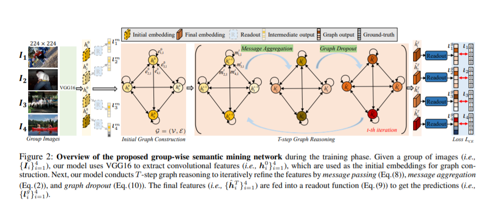 本工作探讨弱监督的语义分割方法,即致力于解决从图像级的训练标注得到像素级的模型预测的问题。我们创新地利用对图像分组并显式建立组内图像间的依赖关系的方法处理该弱监督语义分割问题。具体地,将图像视为节点,并利用互注意机制表征图像间的关系,我们利用一个图网络模型来建立和挖掘这种图像之间的语义关系。为了避免模型只响应一些简单的共性语义,我们进一步提出了应用于图模型的 dropout 机制,设法使其通过互注意机制关联出互补的响应区域,从而得到总体更加准确和完整的目标响应。整个网络可以端到端地完成训练,并在 Pascal VOC 2012 和 COCO 数据集上取得了当前最好的性能。