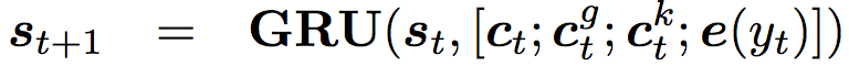 在这里,可以看到 GRU 的输入多了两个向量(来自于表示图信息的向量)和