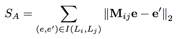 DEM 的目标是最大化各个实体描述 embedding 与对应的其他语言版本之间的 log 相似度,故可以将目标函数描述如下: