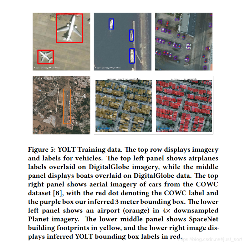 下面的Figure2展示了使用两种不同类型的图像作为输入时模型(原始的YOLOv2)的预测结果对比,左边是直接把卫星图像原图resize到