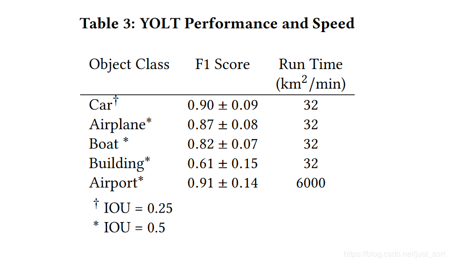 最后Table3展示了YOLT算法对于不同目标的测试精度以及速度情况。