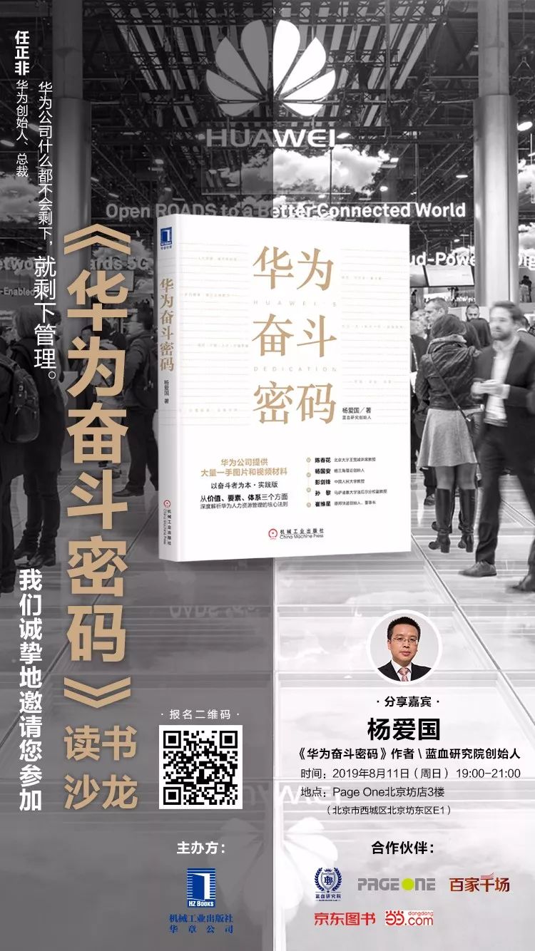 这和华为的人才管理机制是分不开的。8月11日我们特别邀请到了《华为奋斗密码》作者、蓝血研究院创始人杨爱国老师就华为的人才管理和奋斗者文化进行深度解析,一同探寻华为的奋斗密码。