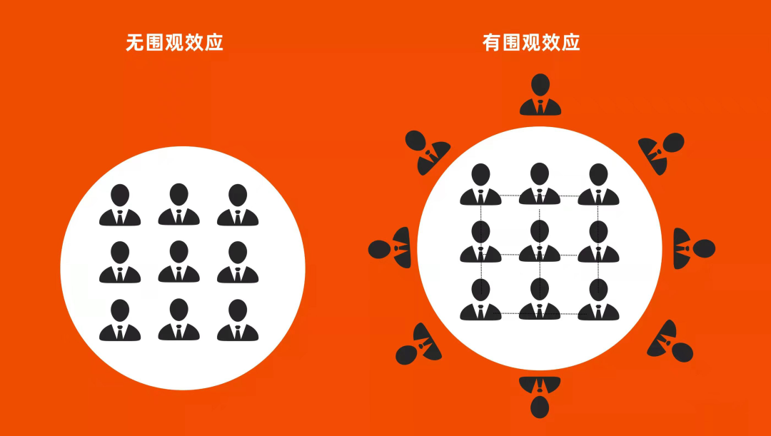 左边这张图象征着“圈住用户”。这气氛就好像你从大街拉来20个人,把他们关进了一个房间里,做新品试吃;