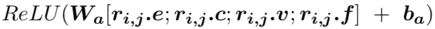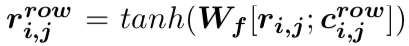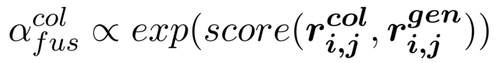 (2) 第二层:我们采用了一个融合门机制将三元组来自行、列和时间维度的信息进行融合。首先通过多层感知器得到三元组来自行、列和时间维度的总体表示。然后通过对比,计算针对这个三元组,它的行、列以及时间维度表示的重要性,最后通过加权求和得到最终的三元组表示。用新得到的