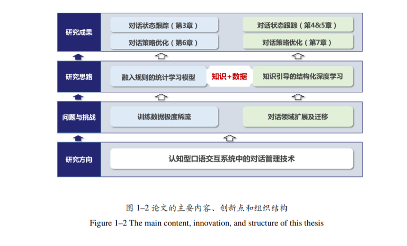 总而言之,针对训练数据稀疏的问题,本论文基于知识和数据双 驱动的思路提出了系列融入规则的统计学习方法,显著降低了模型对 大规模训练数据的依赖;针对对话领域扩展和迁移的问题,本论文同 样基于知识和数据双驱动的思路提出了系列知识引导的结构化深度学 习模型,能够有效支持语义槽的扩展和知识的迁移。