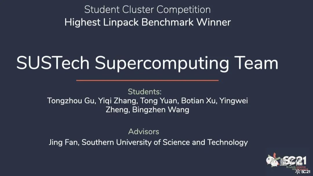 南方科技大学此次表现也不错,获得了LINPACK基准测试最高性能奖。