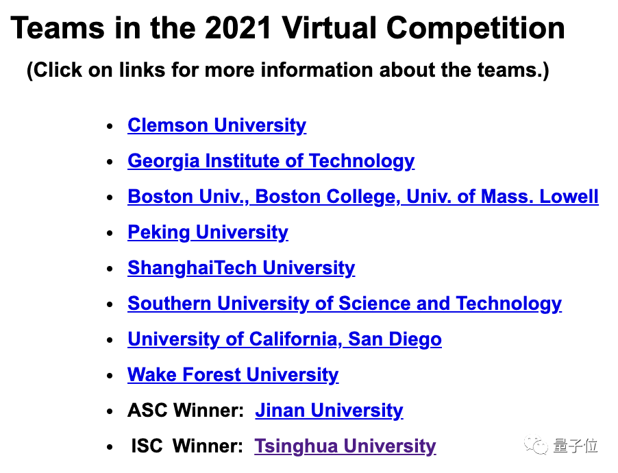 此次10支参赛队伍除了清华大学,还有4所中国高校以及5所美国高校,分别是克莱姆森大学、佐治亚理工学院、波士顿大学、北京大学、上海科技大学、南方科技大学、加州大学圣地亚哥分校、维克森林大学以及暨南大学。
