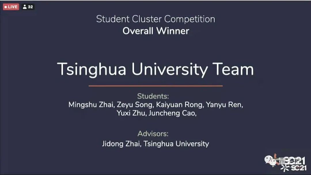 在刚刚结束的国际大学生超算竞赛(SC21)总决赛上,来自清华大学的6名本科生团队在全球10支队伍中脱颖而出,获得了总冠军。
