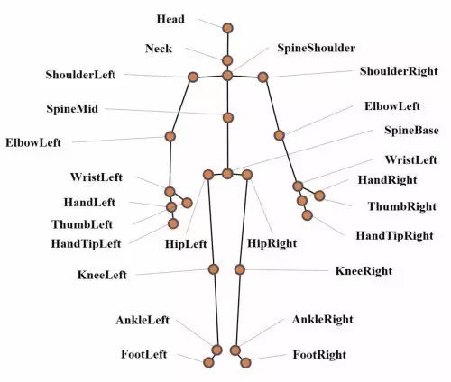 Kinect 摄像头捕获的5个关节点