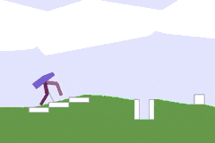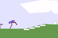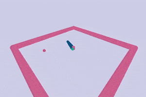 然而,用球代替鸭子并不会立即产生稳定的平衡策略。相反,CMA-ES 发现了一项策略,首先将球滑入其腿部形成的孔中,然后将球带入该孔内,从而以取巧的方式把球带出了房间。这里学到的教训是,一个目标驱动(Objective-driven)的搜索算法将学会利用环境中的任何设计缺陷,并利用它们以实现自己的目标。