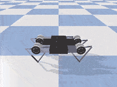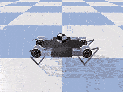 pybullet 中的 Minitaur 模型旨在模仿真实的物理 Minitaur。然而,在完美的模拟环境下训练出来的策略往往不适用于真实世界。它甚至无法泛化到模拟环境内部的小小任务增强。例如,在上图中有一个 Minitaur 被训练用于朝前走(使用 CMA-ES),但是我们看到,当把一只鸭子放在它上面的时候,这个策略并不总是能够保持鸭子不掉而走出房间。