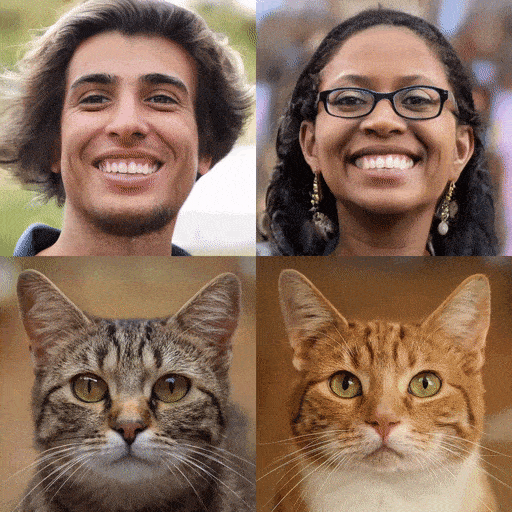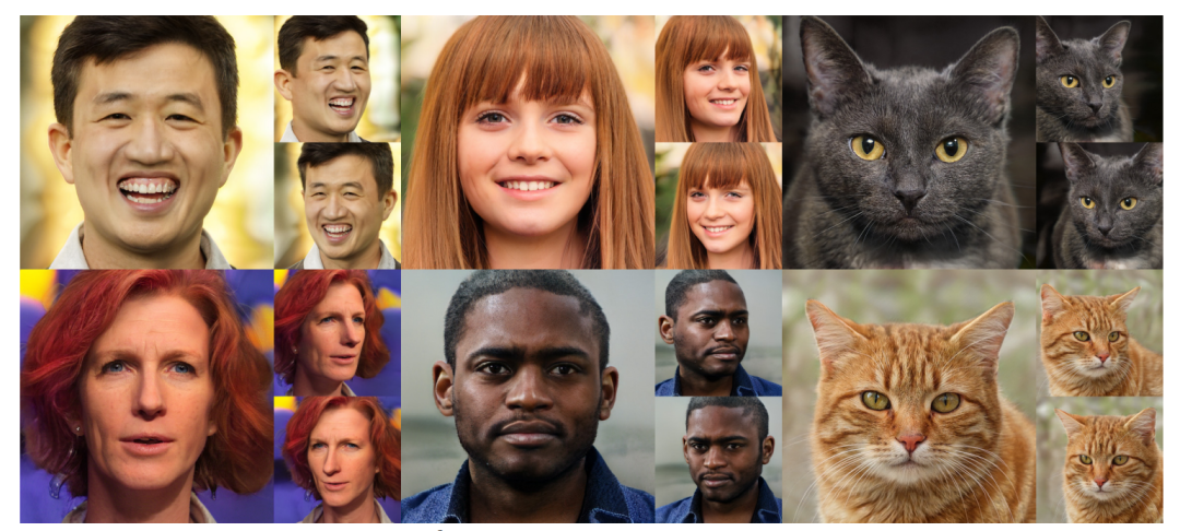 使用FFHQ和AFHQv2 Cats训练的模型的合成示例