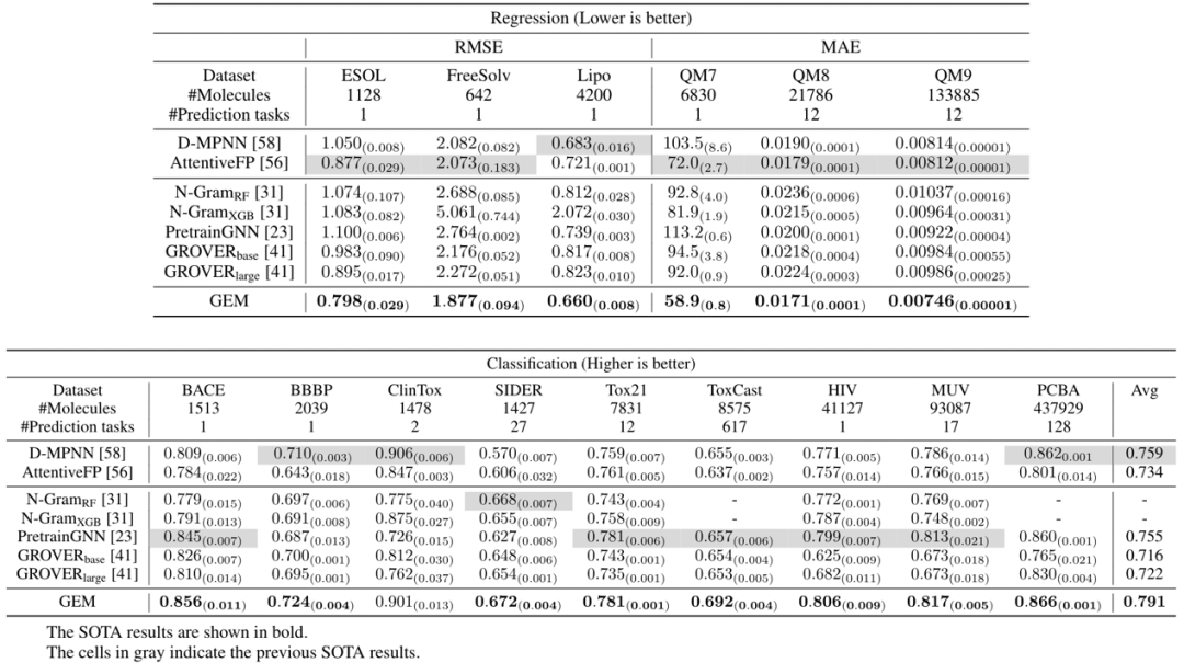 基于空间结构的化合物表征学习方法 GEM 已通过螺旋桨 PaddleHelix 平台对外开放,欢迎大家使用。