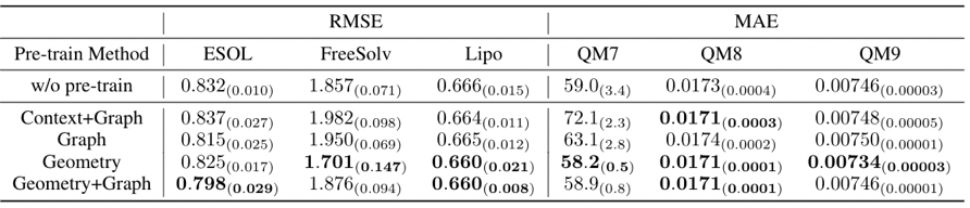 很多的研究工作都证明了机器学习技术,特别是深度学习在化合物性质预测方面的巨大潜力,这些工作使用序列(SMILES 表达式)或是图(原子为节点,化学键为边)来表示化合物,用序列建模或者图神经网络(GNN)去预测化合物的属性。有些研究直接把每个化合物看作一个图,利用基于图拓扑结构的自监督学习方法进行分子表征,比如,遮盖并还原化合物图中的原子,化学键或子结构。但是,这些方法都只把化合物视为拓扑图,没有充分利用化合物的几何结构信息。而化合物的几何结构,即三维空间结构,对化合物的物理,化学,生物等性质都起着关键性的作用,具有相同拓扑结构的两个化合物的空间结构可能完全不同。另一方面,由于生物实验复杂的操作和高昂的成本,化合物的标注数据十分稀少且珍贵。稀疏的数据让深度神经网络极易过拟合,难以发挥强大的建模能力,如何从海量的无标注化合物中学习高质量的化合物表征成为化合物建模和属性预测的关键。