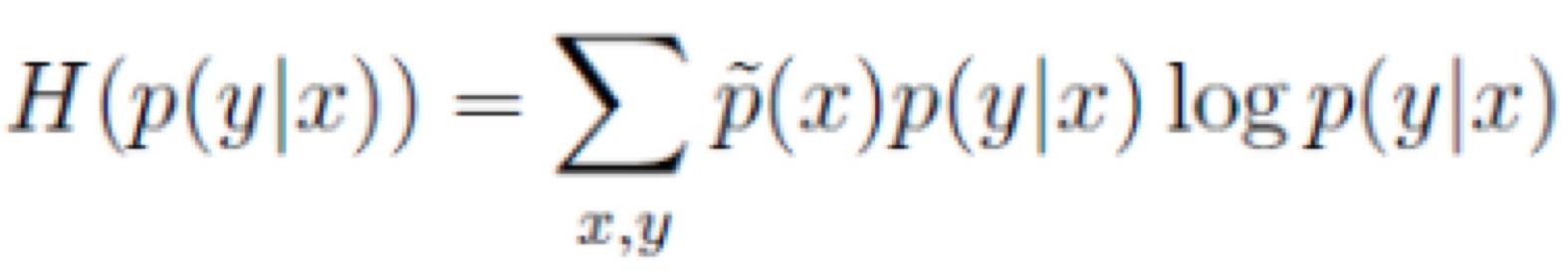 试想,我们从所有特征函数构成的整个概率分布出发的话,第一条其实就是一个对概率分布情况的约束条件,第2、3就是表示让未知事件保持最无序的状态(等概率分布的时候就是最无序的,《信息论基础》与《决策树》中都有讲呐,不理解的回去翻看哦)。而衡量无序度的指标就是熵!所以,既有约束条件,有要尽可能保持最无序的状态,那目标状态不就是满足约束条件的情况下,熵最大的状态嘛。这里的熵当然指的是条件熵(已知x的情况下y的无序度),因此我们的训练目标,也就是目标函数即:
