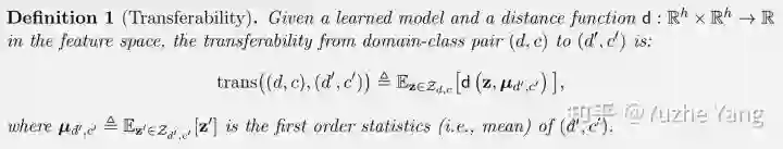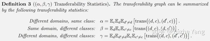 显而易见,我们希望相同的数字(即相同类别)的域类对更接近,而不同类别的域类对互相远离;而这种关系,能够更加被抽象化成三种可转移性统计量:不同domain相同class(
