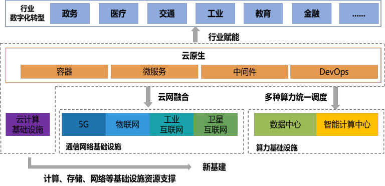 在数字化浪潮下,云计算以资源虚拟化为底层基础,以云原生为技术“内核”,向下打通灵活、高效调度、异构资源融合的基础设施资源,构建全域数据高速互联与算力全覆盖的整体架构;向上支撑研发效能提升,快速响应业务需求,驱动传统行业技术和业务融合,推动企业数字化发展。