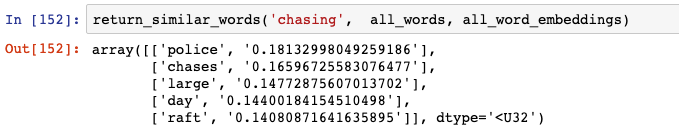 “Chases” 是可以的,但我不确定为什么它认为 “police” 与 “chasing” 类似。