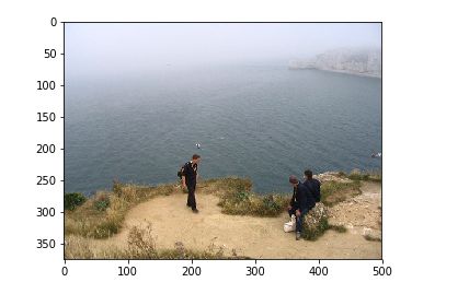 我实现了性能良好的 beam search 方法。下面是网络为测试集中的图像生成的图说示例(以前从未见过)。