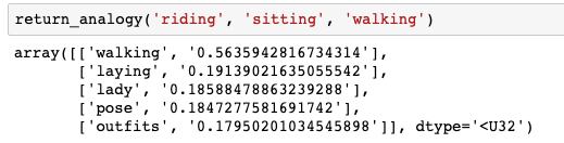 我很好奇通过 caption decoder 学习到的表示是否具有类似的属性。尽管我持怀疑态度,因为训练数据并不大 (大约 3 万个句子),我还是尝试了一下。