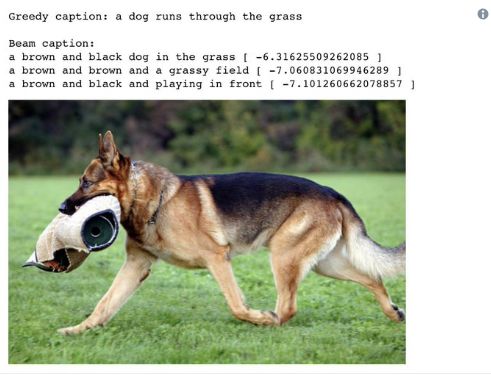 请注意,Inception network 从未针对图说生成任务进行过训练。然而,它的确有效!