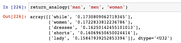 网络学习到的类比并不完美 (有些单词字面上出现的次数<10 次,所以网络没有足够的信息可供学习)。但仍有一些类比。