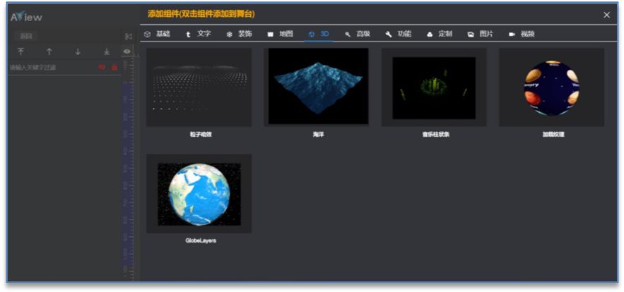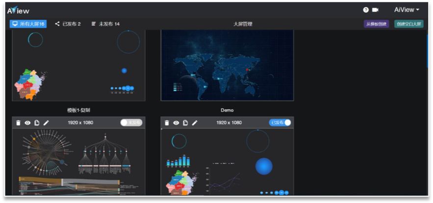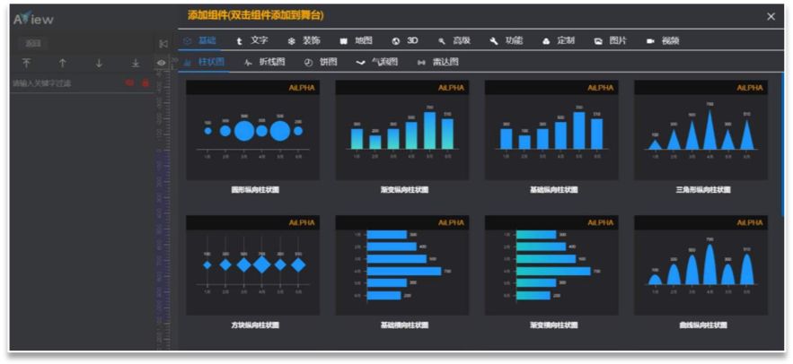 AiView是一款由AiLPHA大数据实验室开发的软件工具类模块,其目的功能为:通过“拖拉拽”等界面化操作完成“数据可视化大屏”创建,完全不需要任何编码的方式。模块沿袭了AiLPHA家族平易近人、精益求新的匠人精神,将技术小白手把手带上数据可视化的康庄大道!
