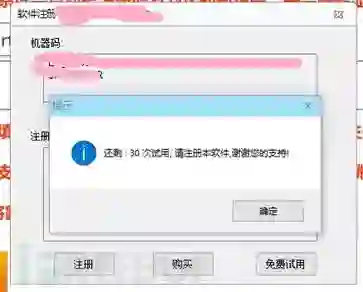 某些软件虽然使用网络进行授权验证,但是由于其试用次数设计的验证缺陷,可以导致通过修改注册表来实现无限次数的试用,导致“不付费也能用”,即出现了授权认证漏洞。下面这款客户端程序即是如此,我们在刚刚打开它的时候会提示试用次数还剩29次。
