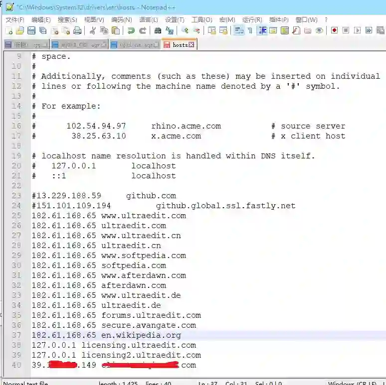 修改hosts文件,将服务器域名绑定到我们自己的假服务器的ip地址