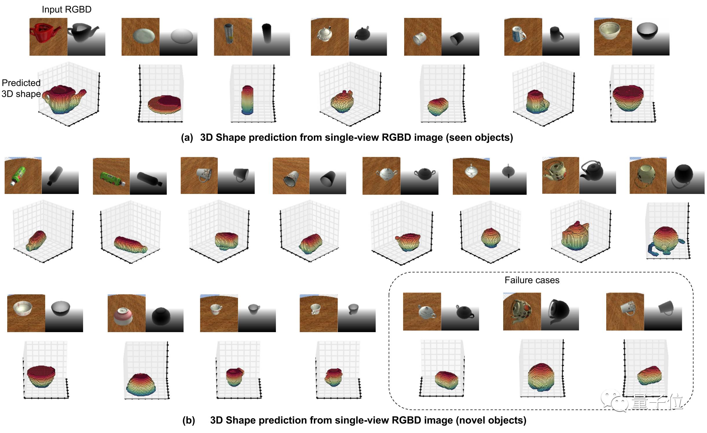 我们提出了一种两阶段的学习框架,分别执行3D形态预测和利用几何感知表征进行抓取结果预测。给定任何场景下的2D感知输入,都能生成相应的3D物体形状(如体积表征),这是本文所提出的几何感知智能体中一个非常重要的特性。更具体地说,