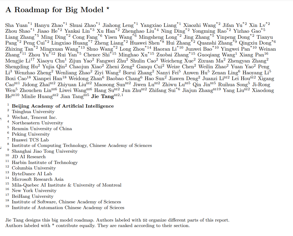 随着以深度学习为代表的AI技术的快速发展,智能模型的训练应用模式逐渐由“大炼模型”向“炼大模型”转变。大模型研究在近年来发展迅速,模型的参数量以惊人的速度扩展。北京智源人工智能研究院最近发布《A Roadmap for Big Model》由悟道大模型研究项目负责人,智源学术副院长,清华大学计算机系教授唐杰牵头,从大模型基础资源、大模型构建、大模型关键技术与大模型应用探索4个层面出发,对15个具体领域的16个相关主题进行全面介绍和探讨。非常值得关注。