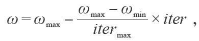 其中ωmax 为0.9, ωmin 为0.4, itermax 为最大演化代数。