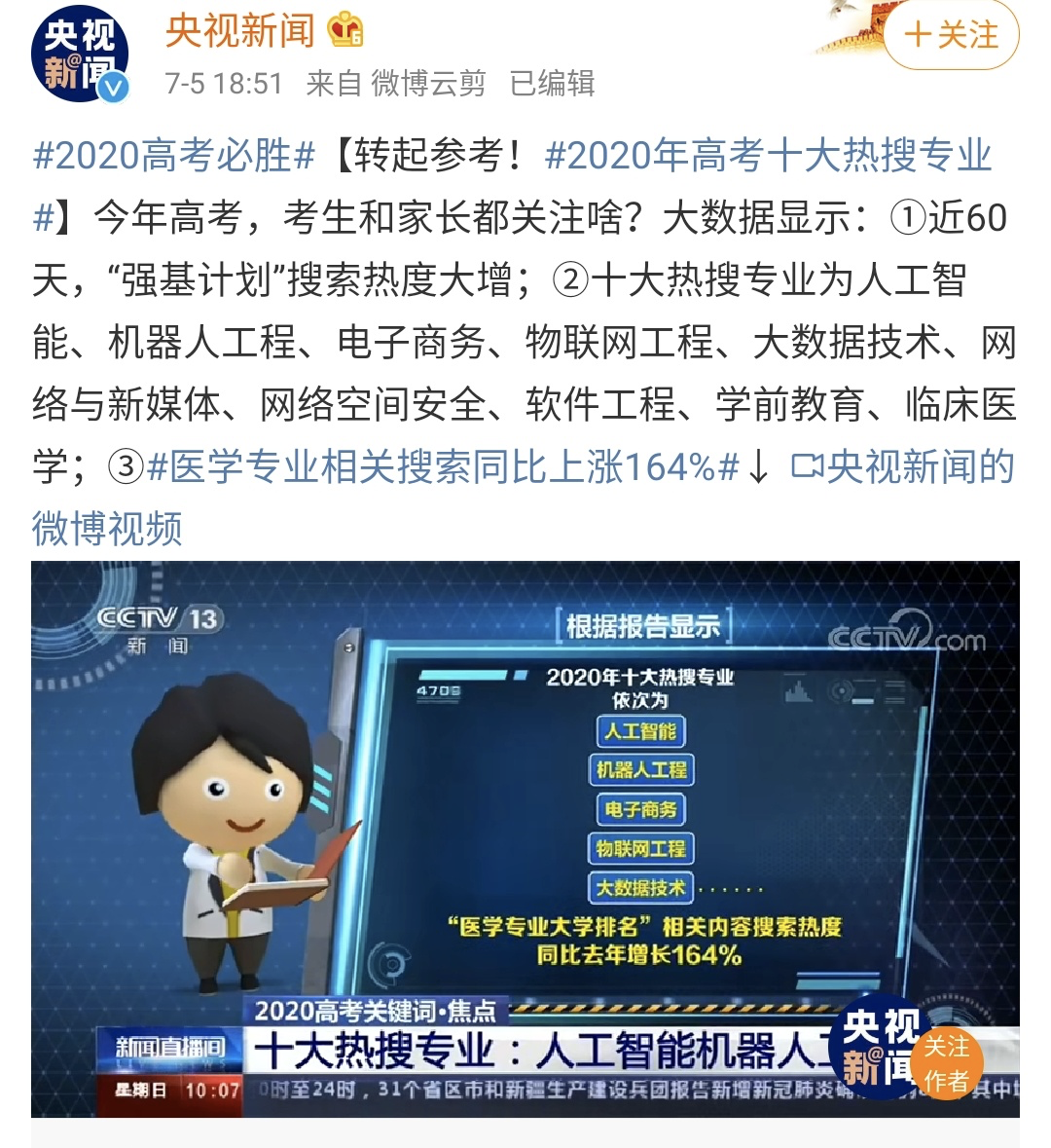 说到人工智能,近期又有什么和高考相关的AI趣事?又有什么热搜专业可以重点考虑呢?