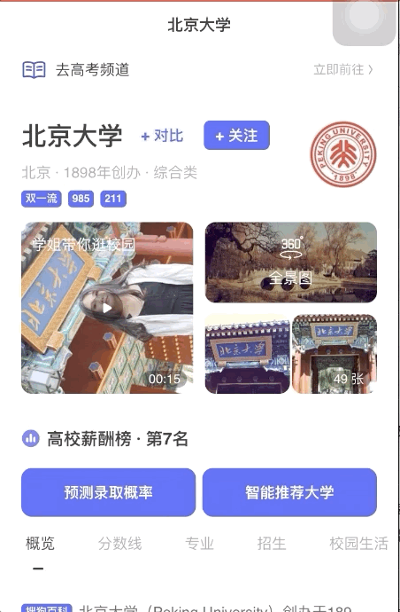 以北京大学为例,夸克搜索显示高效薪酬榜排名第7,王牌专业包括理论与应用力学,软件工程、阿拉伯语、生物工程、环境科学、电子信息科学与技术、计算机科学与技术等。另外,还附带有毕业生去向统计,为考生今后选择科研还是工作提供一定的参考。
