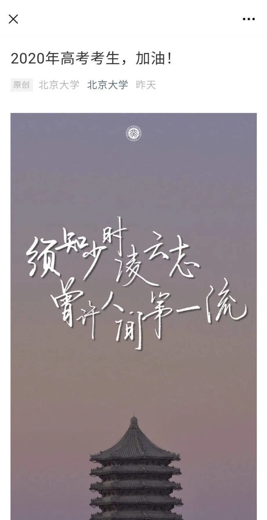 高考前夕还有一件轶事值得分享。北京大学官方公众号,为全国广大学子们发了一句加油打气的诗,读起来就很北大——「须知少时凌云志,曾许人间第一流」。结果却因为这句诗引来了不小的争议。