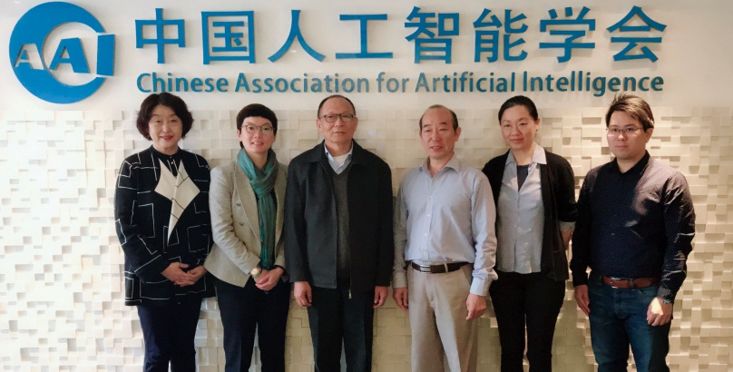 2018年4月17日,香港科学园副总监霍露明博士、龙昌国际控股有限公司董事总经理梁钟铭等人到中国人工智能学会进行考察合作,学会理事长李德毅院士、秘书长王卫宁研究员和国际部秘书长李蓓等进行了热情接待!