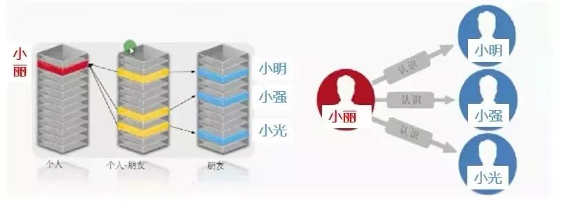 在《新程序员》杂志的报道采访过程中能看到,目前图数据库仍是较为新型的系统。传统的关系数据库,虽然名字叫关系数据库,但其实数据组织形式并非关系原生。关系型数据库的数据主要是以表的形式组织,一张张的表联系起来,依靠表上的键值连接。所以关系数据库应该叫表数据库,而图数据库,反而应该叫关系数据库。下图分别展示了关系型数据库和图数据库存储结构对比: