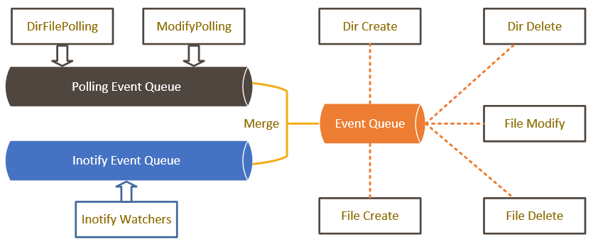 inotify属于事件监听方式,根据用户配置监听对应的目录以及子目录,当监听目录存在变化,内核会产生相应的通知事件。