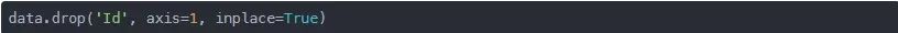 因为数据集准备得很好,所以我们不需要进行很多预处理。我们可能会想做的一件事是删除“ID”列,因为它只是对示例所在行的一个表示。