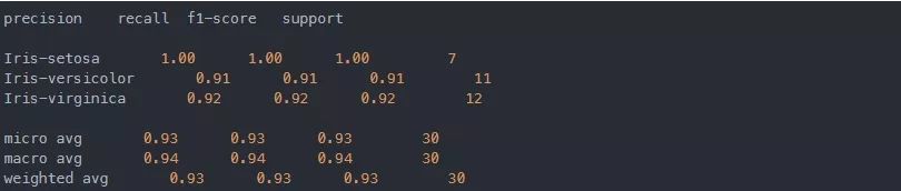 分类报告是一种Scikit-Learn的内置指标,专门针对分类问题而创建。使用分类报告可以让你快速直观地了解模型的执行情况。召回率会将你的模型标记为类A(某些给定的类)的样本数量与类A的样本总数进行比较,这在报告中会表示出来。