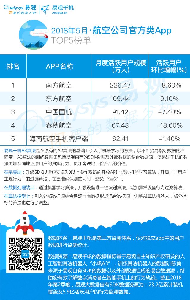 活动运营方面,东方航空通过亮相2018上海航展、举办2018上海国际休闲旅游展、出席 2018中国临空经济(廊坊)论坛提升线下曝广度;同时展开六一节日营销,开展“快乐‘六一’,体验东航”主题活动增强互动,提高用户活跃度。