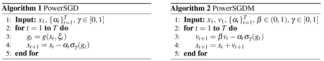 这里,我们把Powerball函数作用到SGD的随机梯度项上,如下所示: