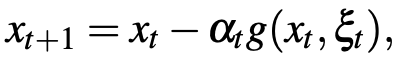 这里f是一个有下界的函数,SGD已经被证明是高维优化问题的一个有效且高效的求解方法。它通过迭代地更新参数向量对f进行了优化,这个更新是朝着随机梯度g的反方向进行的。这里的随机梯度是通过训练数据集的第t个小批次计算而来。SGD的参数更新策略如下所示: