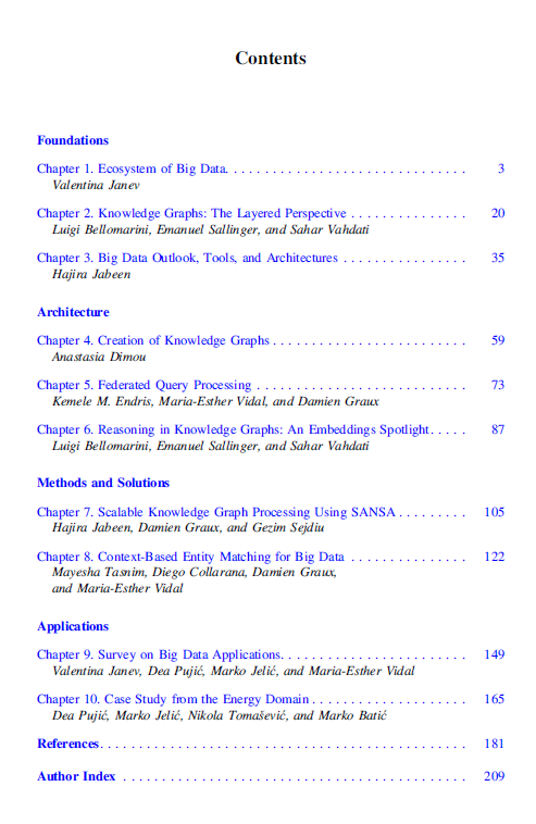 本书旨在介绍大数据处理的一些定义、方法、工具、框架和解决方案,从信息提取和知识表示的过程开始,通过知识处理和分析,再到可视化、意义构建和实际应用。本书的每一章都讲述了数据处理链的一些相关方面,特别关注于理解企业知识图、语义大数据架构和智能数据分析解决方案。这本书是针对研究生从技术学科,专业观众继续教育短期课程,并研究人员从不同的领域自学课程。具备计算机科学、数学和统计学的基本技能。